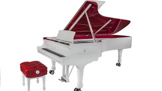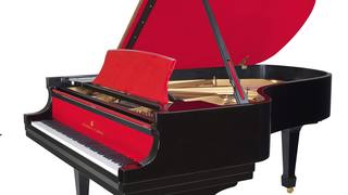 Vibrant red accents breathe character into this ebony grand piano. The simple addition of colour on the lid, music desk and prop stick offers a transformation from classic to contemporary. There is a rainbow spectrum of colours available.